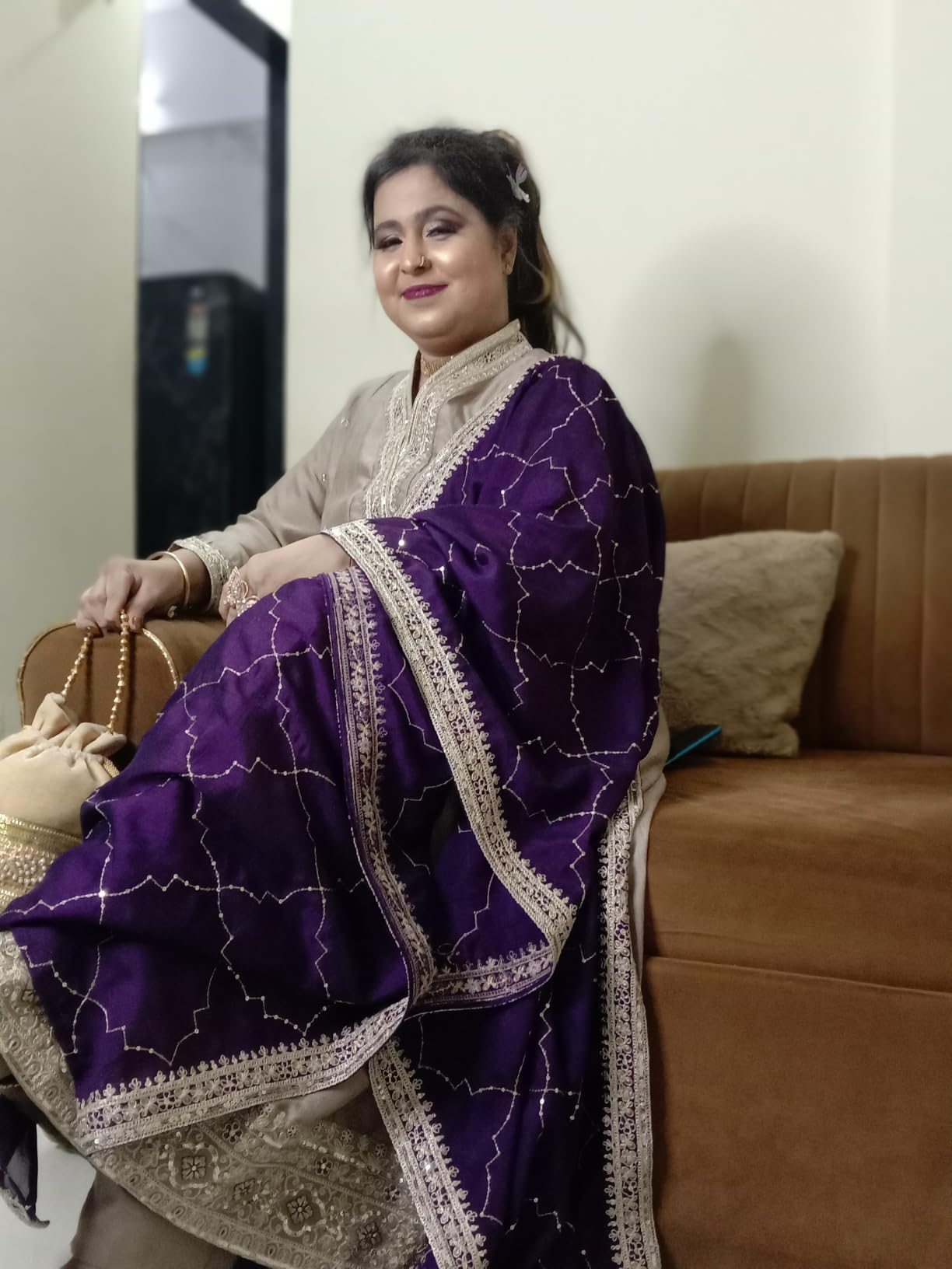 Type of Fabric : Breathable Silk Blend Kurti Fabric, Inner Fabric : Crepe, Kurti Color : Grey, Print & Pattern : Embroidered, Pattern Type : Sequence, Dupatta Pattern : Lace with Embroidery, Dupatta Color : Violet, Kurta Style : Anarkali Kurti Set for Women, Neckline Style : V-Neck, Sleeve : 3/4 Sleeve, Length of Kurta : Knee Length, Bottom Type : Pant, Fit Type : Tailored, Relaxed and Readymade Fully Stitiched Anarkali Kurta Set, Department : Women
